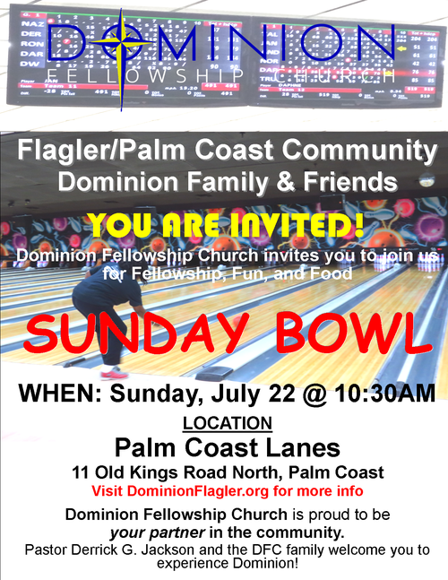 Disclaimer: Palm Coast Lanes does not specifically endorse or support the program or individuals involved in Dominion Fellowship Church.
