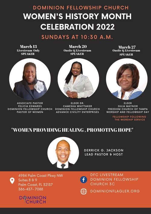 WOMEN'S HISTORY MONTH CELEBRATION @ Dominion - Sundays, March 13, 20, and 27, 2022 @ 10:30 a.m.